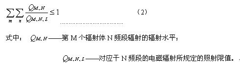 4.4.3 在对辐射水平进行评价时,应考虑到某一辐射体可能存在的几种辐射频率的贡献以及多个辐射作的贡献,即应满足式(2):